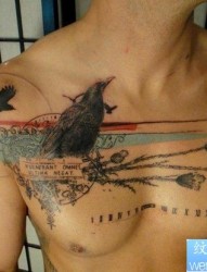 一幅胸部羽毛纹身图案