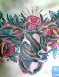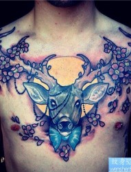 一幅胸口彩色羚羊纹身图案