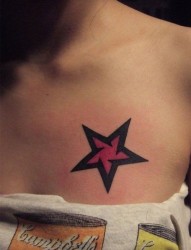 胸部个性五角星纹身图案