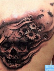 个性胸部骷髅头纹身图案
