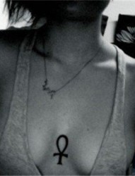 女生胸部个性钥匙性感纹身图案