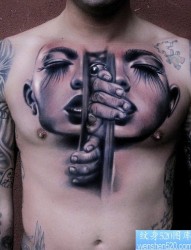 一款胸部个性纹身图案