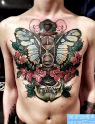胸部蝴蝶纹身作品