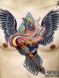 一幅胸部个性欧美彩色纹身作品