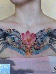 女人胸部彩色双鱼纹身作品