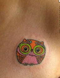 刺青520图库推荐一幅胸部彩色猫头鹰刺青图片