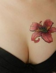 胸部纹身图片:胸部彩色百合花纹身图片纹身作品