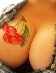 胸部纹身图片:胸部彩色樱桃纹身图片纹身作品