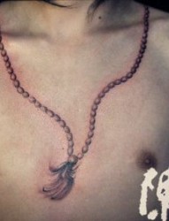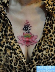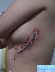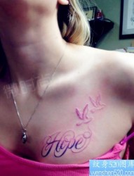 女孩子胸部潮流精美的花体英文字母纹身图片