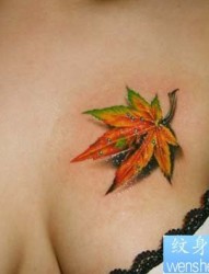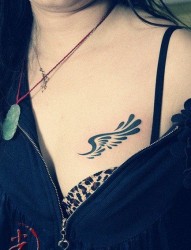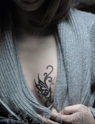 潮流性感的女人胸部图腾蝴蝶纹身图片