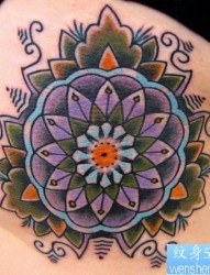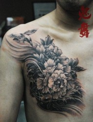 唯美经典的男生胸部莲花与佛珠纹身图片