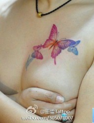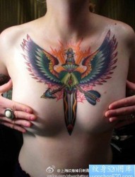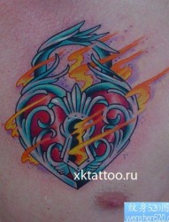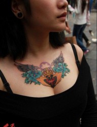女人胸前好看的爱心皇冠翅膀纹身图片