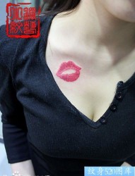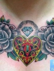 女人胸部潮流经典的爱心锁与玫瑰花纹身图片