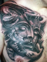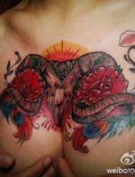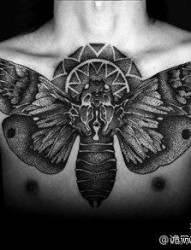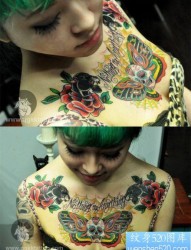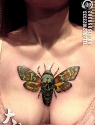 美女前胸潮流精美的骷髅蝴蝶纹身图片