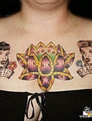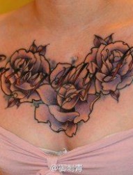 女人前胸时尚唯美的线条蕾丝纹身图片