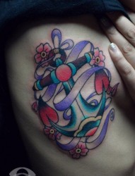 女人胸前漂亮潮流的船锚与船舵纹身图片
