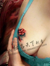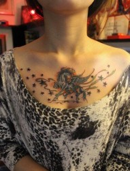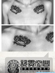 美女胸前小巧潮流的蝴蝶结纹身图片