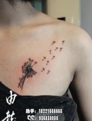 女人前胸时尚潮流的黑白蒲公英纹身图片