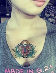 女人前胸精美时尚的爱心锁纹身图片