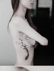 诱惑迷人的美女侧胸羽化燕纹身图片