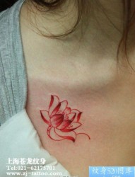 美女前胸彩色莲花纹身图片