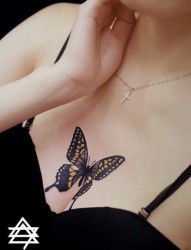 美女胸部唯美漂亮的蝴蝶纹身图片