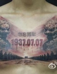 男生胸前一幅经典的卢沟桥纹身图片