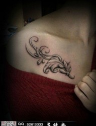 美女胸前唯美潮流的树叶纹身图片