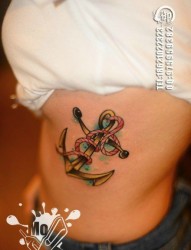 女人侧胸精美时尚的船锚纹身图片