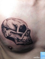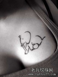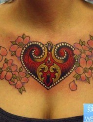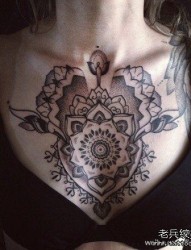女人胸前时尚经典的点刺图腾藤花纹身图片