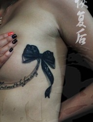 美女胸部精美时尚的蕾丝蝴蝶结纹身图片