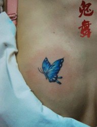 女性前胸漂亮潮流的蝴蝶纹身图片