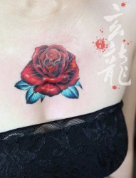 女人前胸漂亮时尚的彩色玫瑰花纹身图片
