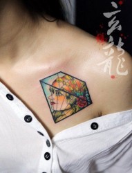 美女前胸漂亮时尚的上帝之眼纹身图片
