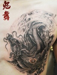 诱人的美女胸部精美的彩色图腾莲花纹身图片