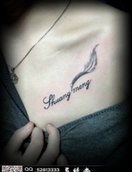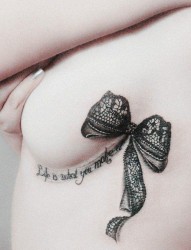 美女胸部潮流诱人的蝴蝶结蕾丝纹身图片