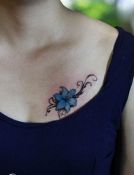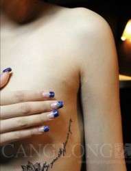 美女侧胸唯美潮流的玫瑰花纹身图片