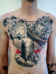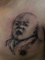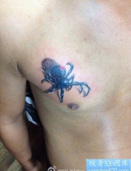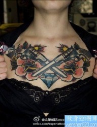 帅哥胸口上一幅欧美风纹身图片欣赏