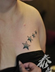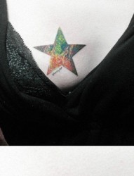 女人胸部一幅精美的彩色星空五角星纹身图片