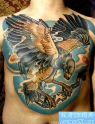 胸口上一幅漂亮的欧美老鹰纹身图片