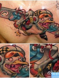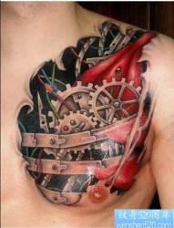 一幅胸部彩色机械纹身图片由纹身520图库推荐
