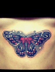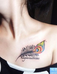 最好的纹身馆推荐一幅女人胸部彩色孔雀羽毛纹身