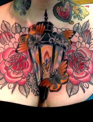 胸部上一幅潮流个性的玫瑰花纹身图片