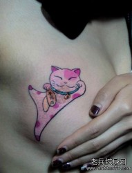一幅胸部招财猫纹身图片由纹身520图库推荐