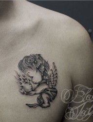 一幅胸部小天使纹身图片由纹身520图库推荐