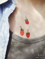 纹身520图库推荐一幅胸部卡通草莓纹身图片