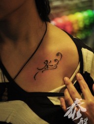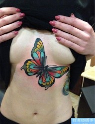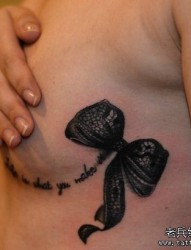 纹身520图库推荐一幅女人胸部蝴蝶结字母文身图片
