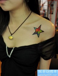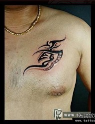 一幅胸部六芒星字母文身图片由纹身520图库推荐
