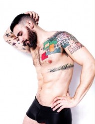 一款男士胸部和手臂彩色纹身由纹身520图库推荐