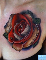 一幅胸部彩色纹身图片由纹身520图库推荐